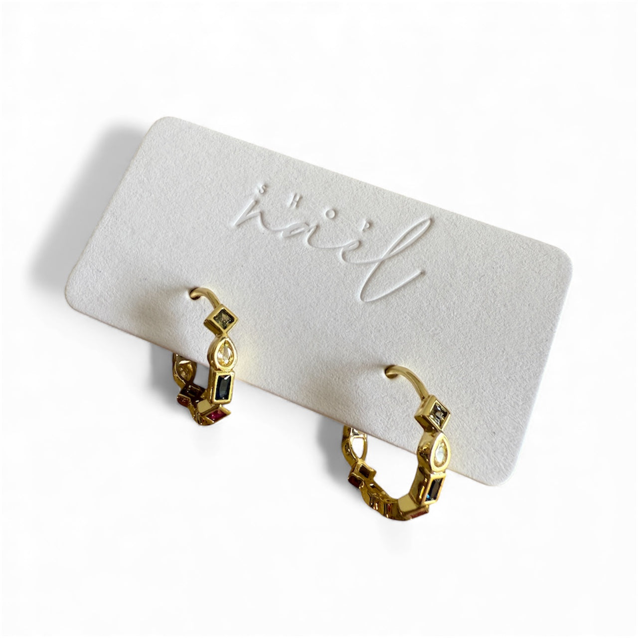 - Mini-hoop design with vibrant zircon detailing