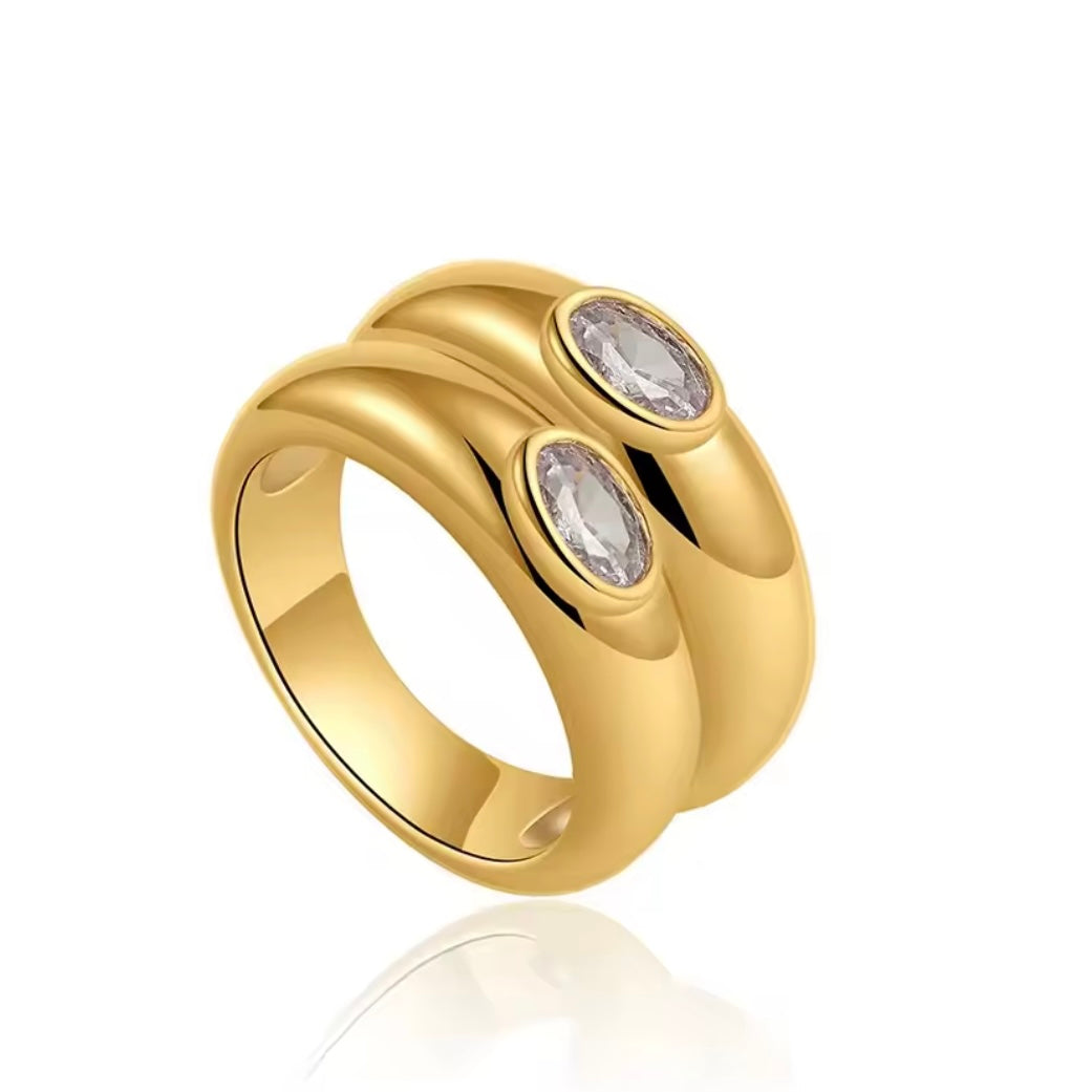 Elevate your everyday style with this chic and timeless women’s wedding ring. Designed with a modern two-tone, double-layer look, this ring is crafted from durable waterproof stainless steel and finished with luxurious 18K gold plating. Sparkling zircon stones add elegant brilliance, making it perfect for weddings, engagements, or everyday wear.