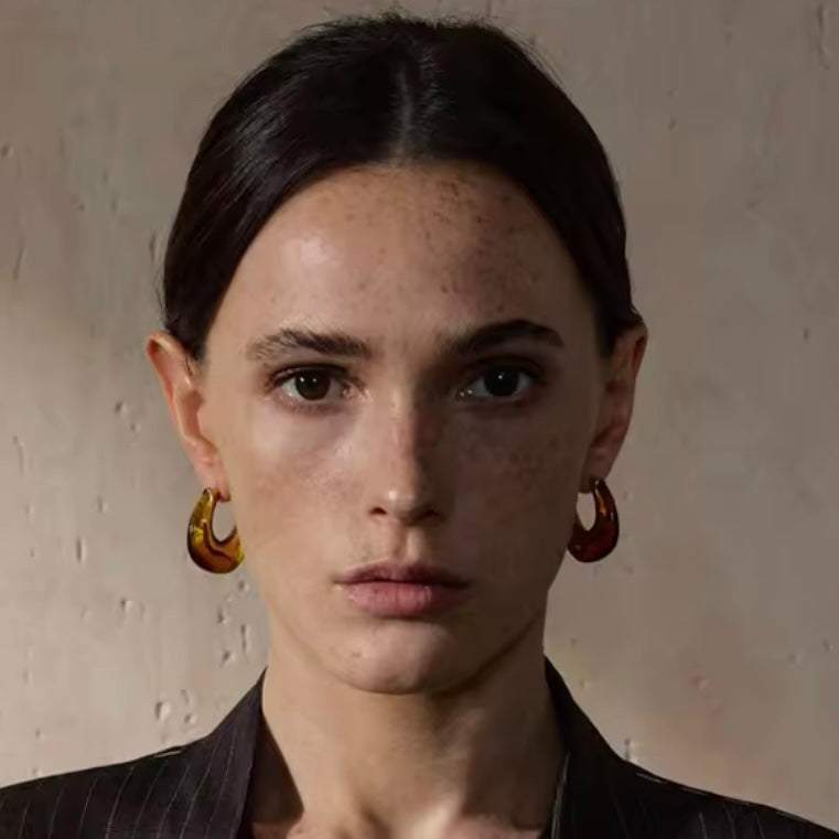 Add a pop of golden warmth to your look with the Honey Loop — a pair of chunky amber hoops designed to turn heads without weighing you down. Made from high-quality acetate acrylic resin, these earrings are lightweight, waterproof, and mounted on 14k gold-plated stainless steel posts for a luxe finish that’s gentle on sensitive ears. Perfect for everyday glam or a weekend statement.