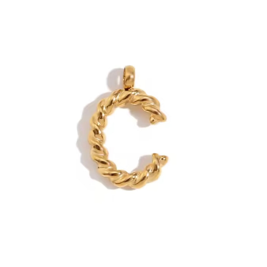 Elevate your everyday look with the Luxe Letter Charm — a sleek, personalized pendant featuring your chosen initial in a delicate twisted gold design. Crafted from hypoallergenic 316L stainless steel and finished in 18K gold plating, this pendant offers lasting shine, comfort, and style.